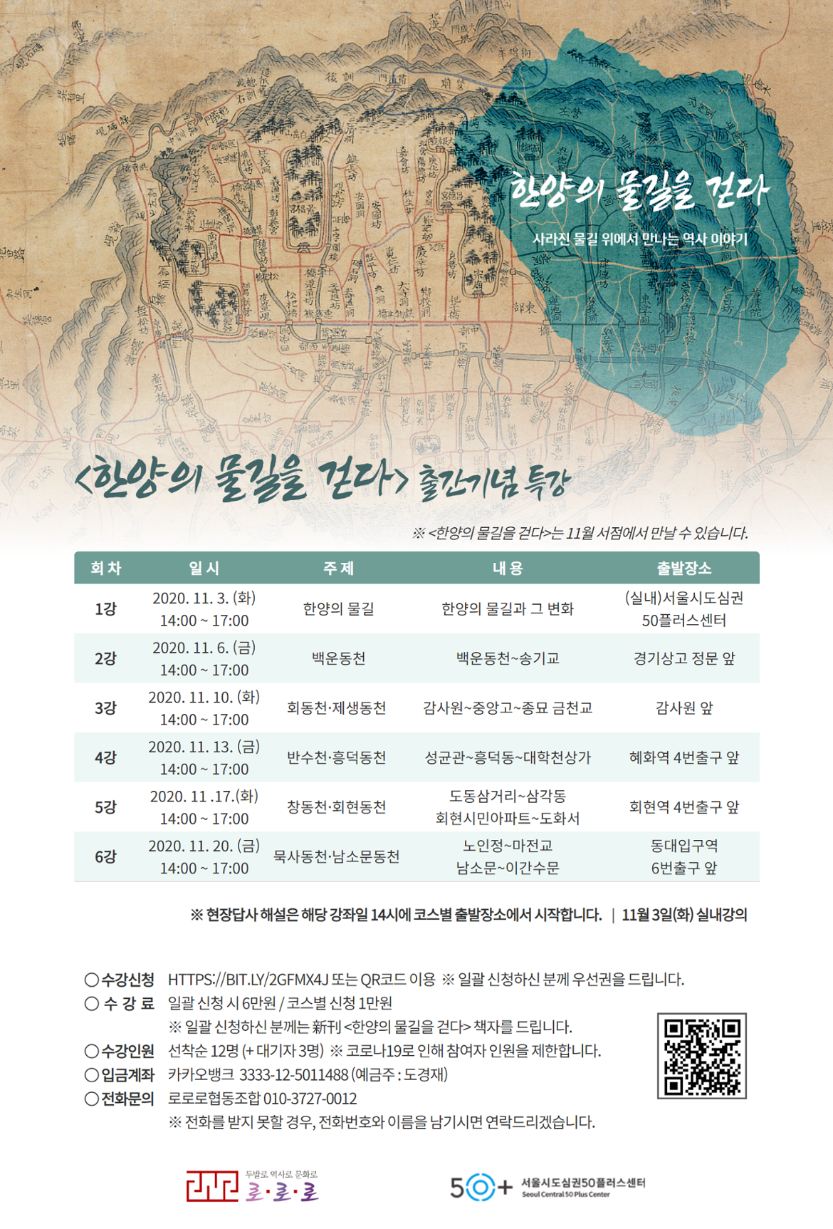 한양의 물길 이야기는 <한양의 물길을 걷다> 출간기념특강으로 이어집니다.