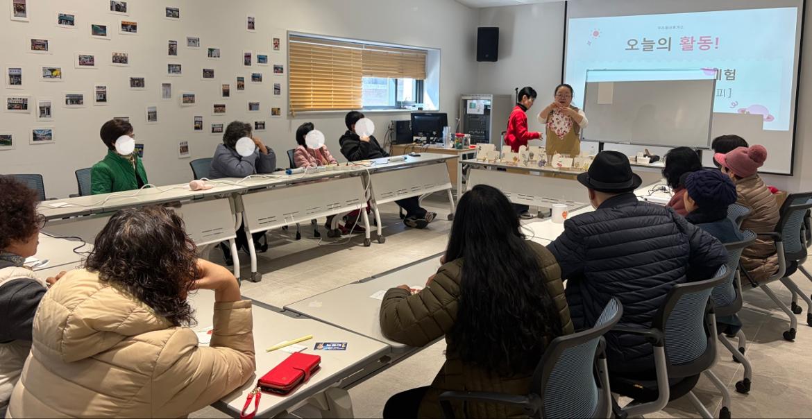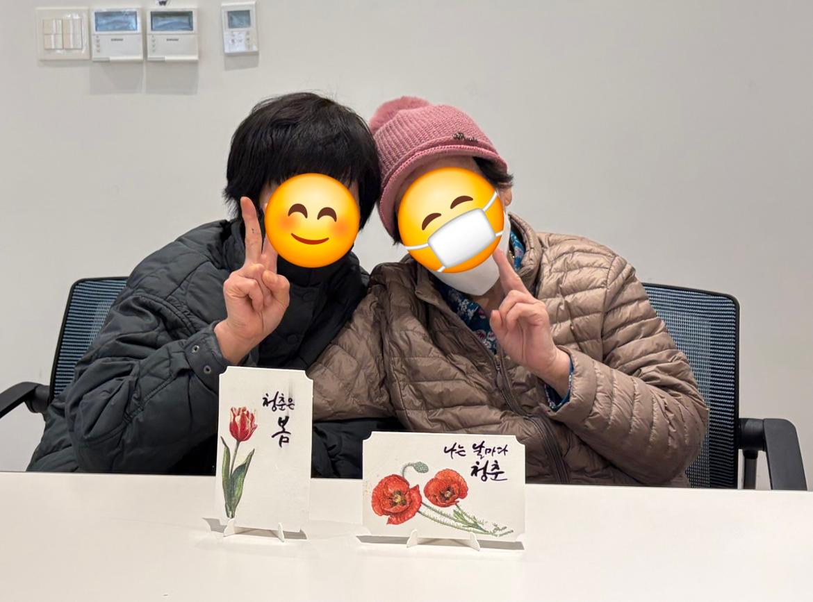 그래서 우리 어르신들과 함께 봄 꽃을 그렸습니다. 아니 붙였습니다~~^^