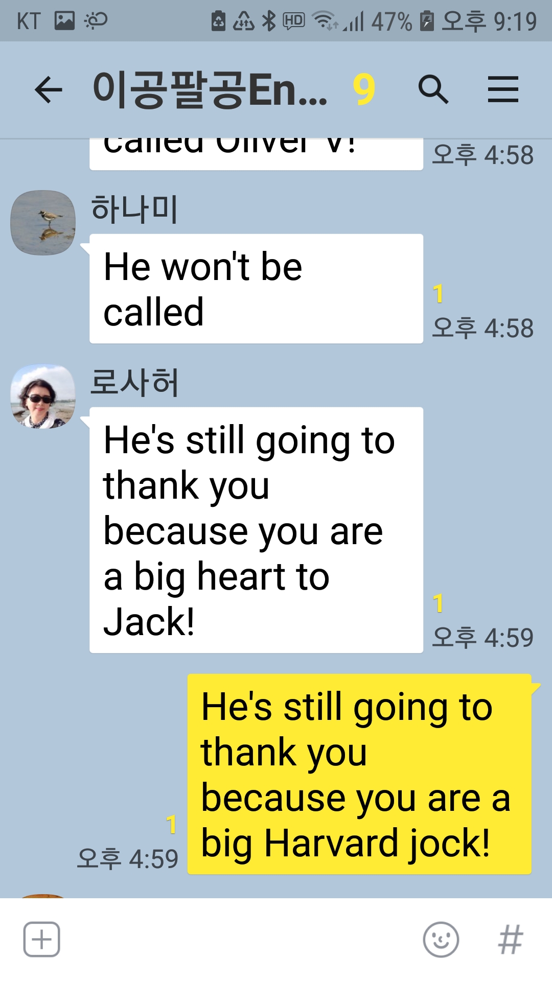 1. 오늘 출석 7명(허영숙Rosa,  임영옥Jane, 최혜숙Helen, 김공직plant 황규영Kenny, 하나미, 장지숙Jp)