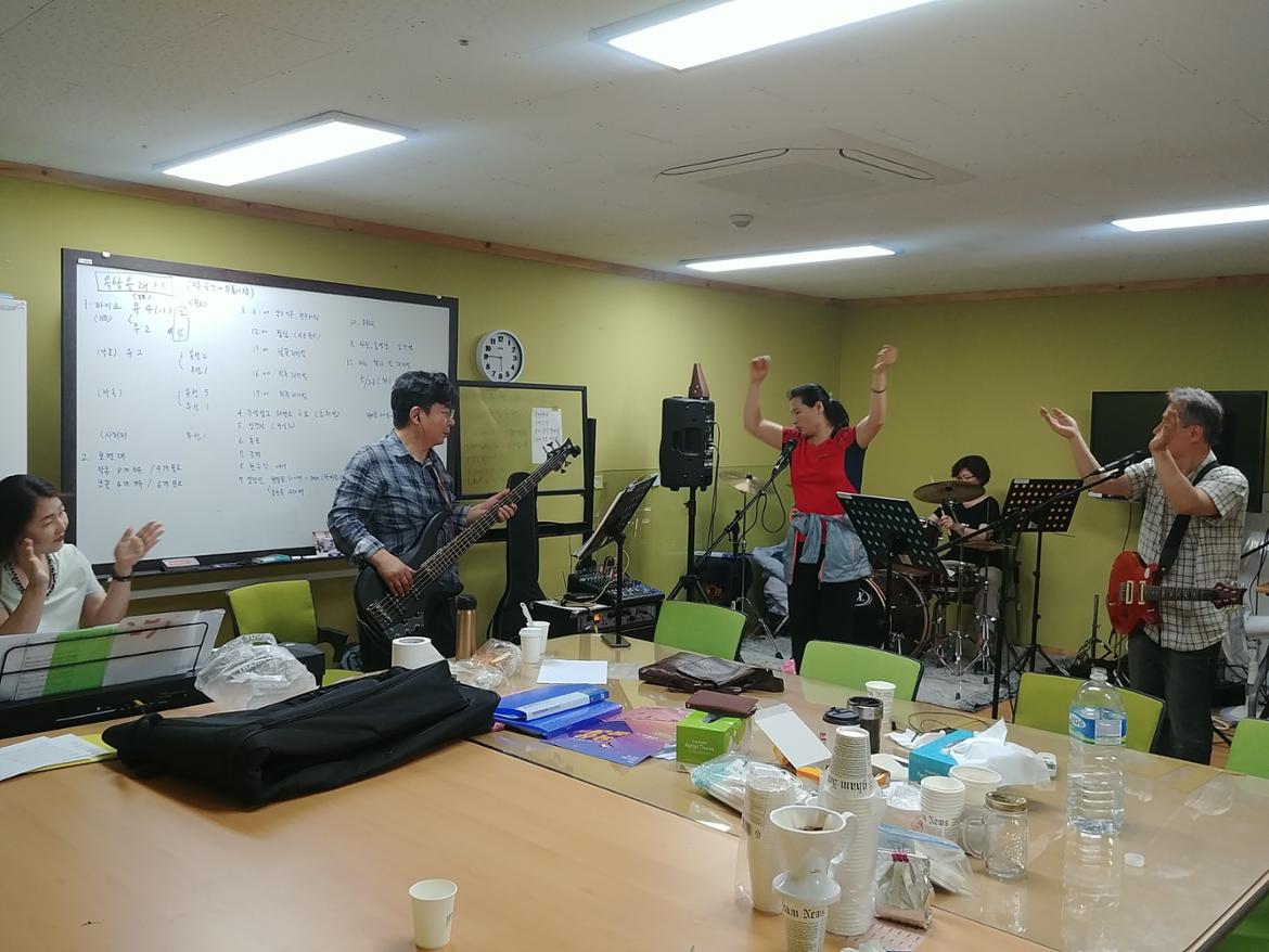 5/31공연 최종연습날입니다. 이제 이틍 후면 공연입니다. 오늘은 원라미님과 장구를 맞춰보는 연습도 있었습니다. 공연에 대한 이러저러한 얘기들도 나누고 성공다짐도 결의하는 시간을 가졌습니다. 마지막으로 공연 당일 장비를 옮기기 이한 장비 해체와 정리까지 모두가 한마음으로 공연준비에 힘썼습니다, 이제는 좋은 결과만을 바랄뿐!