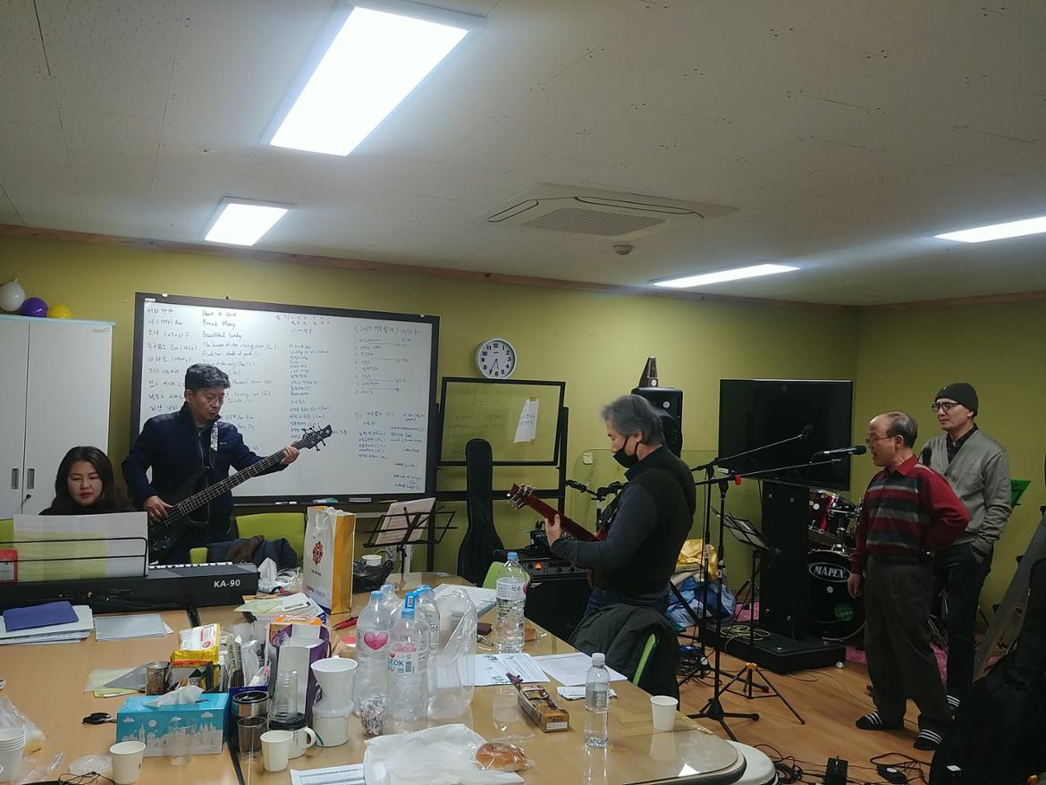 12월에 송년콘서트 준비로 마음이 분주합니다. 특히 이번 공연은 이제까지 해본적 없던 트로트!  다들 열심히 연습에 임하고 있습니다. 특히 권옥순님과 유영남님의 보컬에 기대가 큽니다^^
