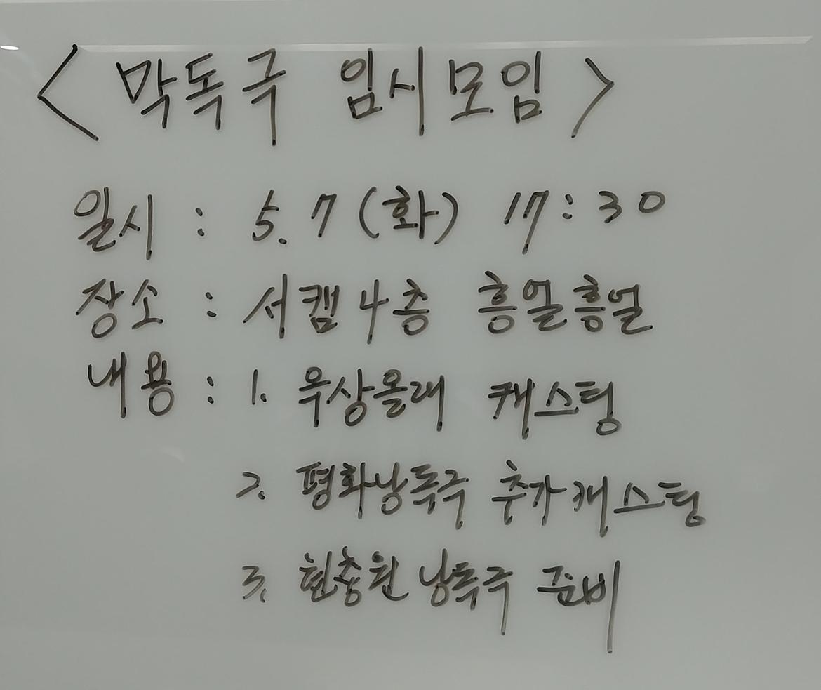 평화낭독극 공연준비와 옥상올래 공연 회의로 모인 임시모임입니다. 현충원 공연을 앞두고 분주하네요^^