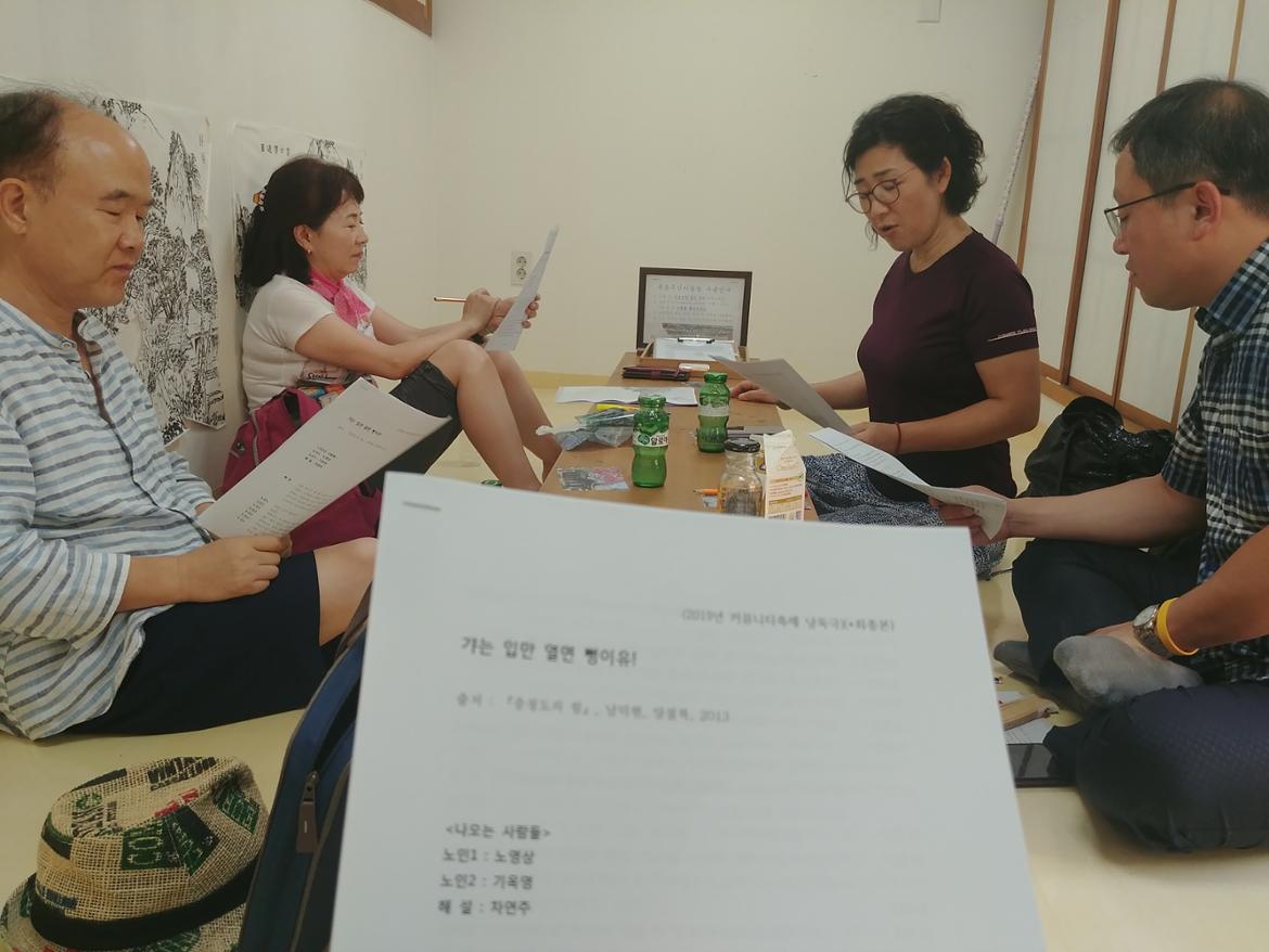 8/28일 커뮤니티 축제 와글와글 공연 낭독극연습을 하기위해 날씨좋은 일요일 한옥마을 북촌마을서재에서 모였습니다.