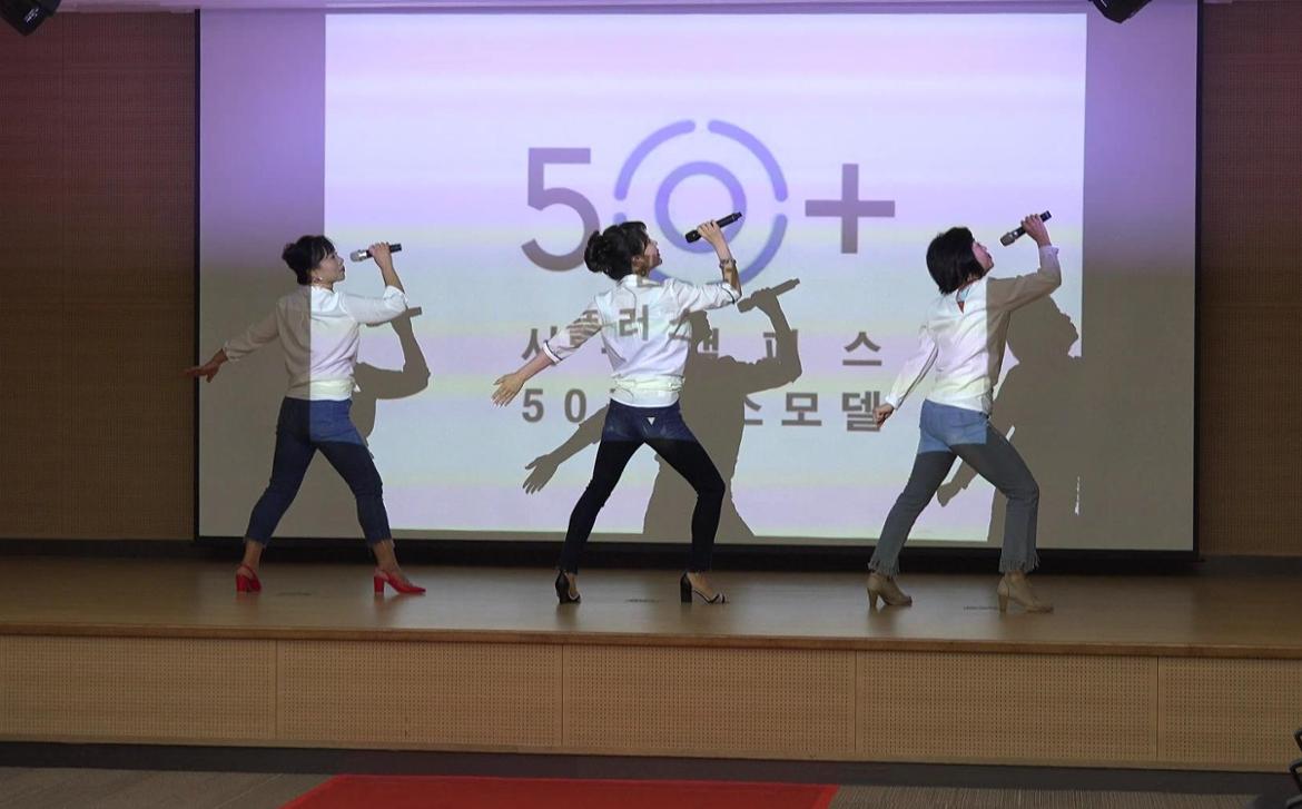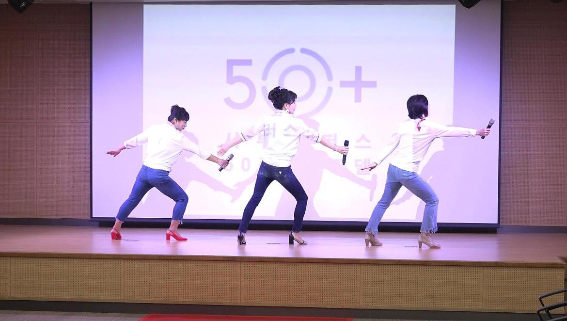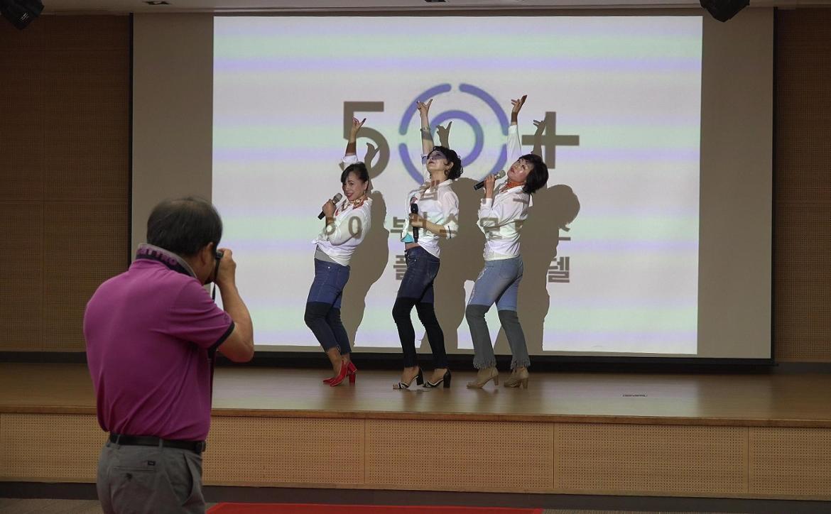 - 음악에 맞추어 신나게 춤을 추며 스트레스도 풀고 50플러스 모델반 박수로 환영받아 공연준비한 보람도 느꼈습니다