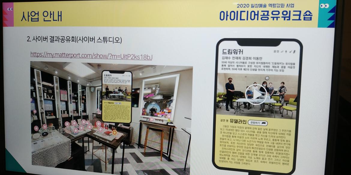 - 일상예술 역량강화 사업 참여팀 간의 아이디어 공유.
