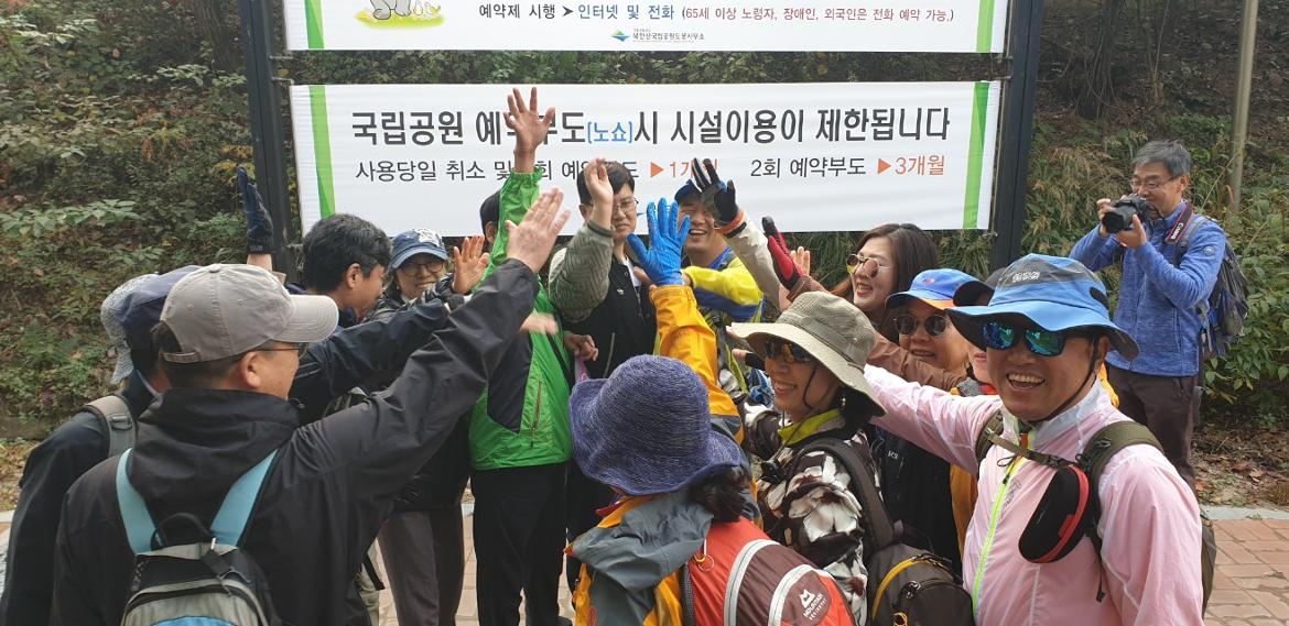 - 스마트자립생활센터(주성호 대표) 장애우들과 함께 구파발역 1번 출구에서 만나 34번, 704번 버스타고 송추 교현으로 갔습니다. 교현탐방지원센터 ~석굴암 입구 ~오봉전망대~ 대전차 장애물 ~ 우이 탐방지원센터까 6.8km를 약 3시간을 걸어 우이령길을 종주(북한산 둘레길 21구간) 했습니다.
