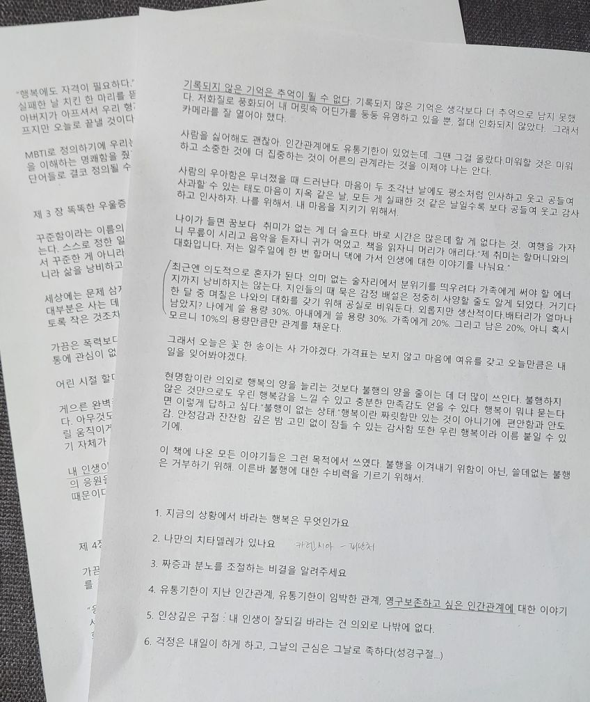- '어른의 행복은 조용하다' 책 읽고 토론하기