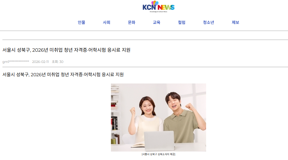 성북구 미취업청년. 자격증. 어학시험 응시료지원 기사 제보