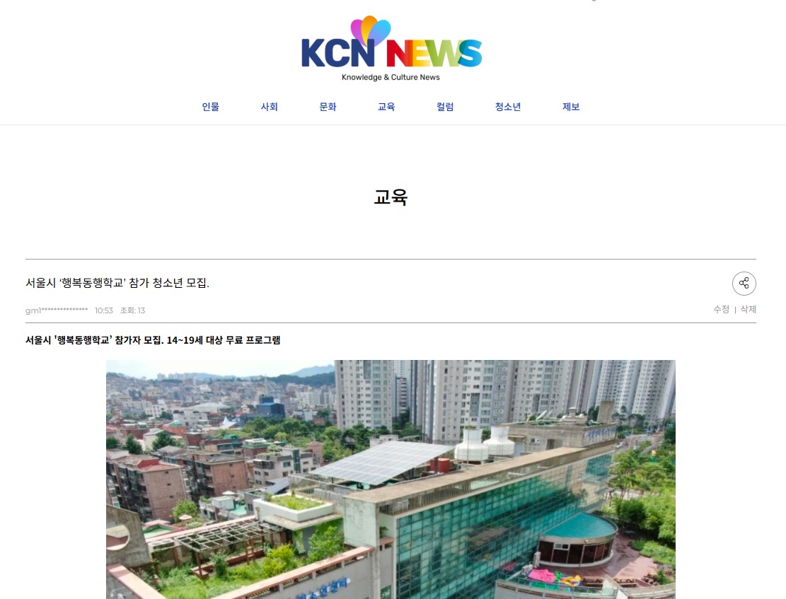 시립성북청소년센터 '행복동행학교' 참가자 모집