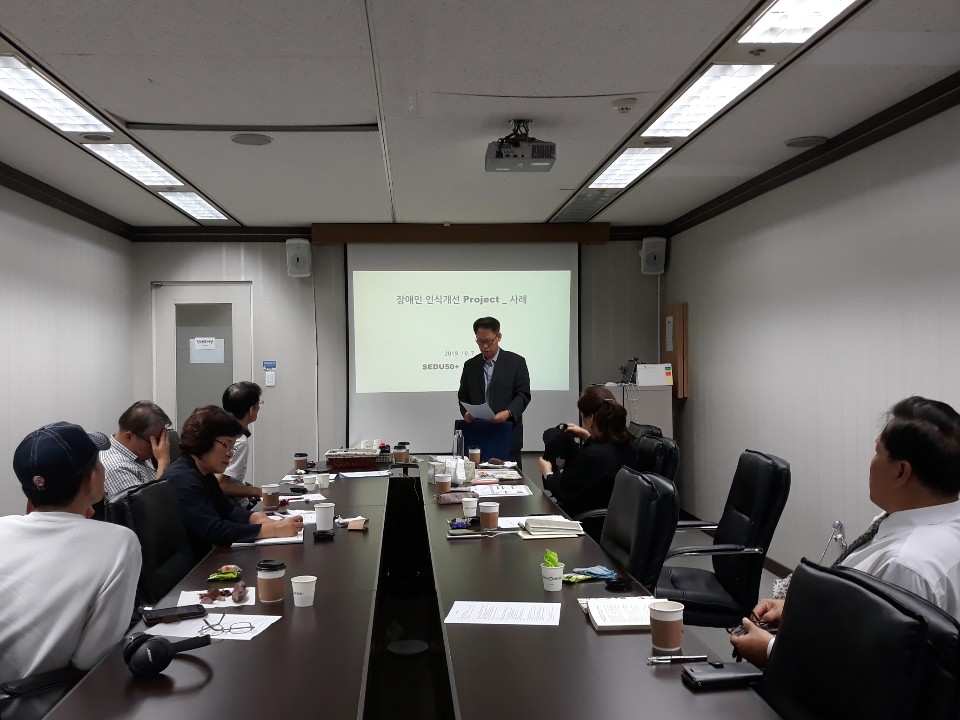- 장애인 인식개선 교육 프로젝트 진행상황 발표 및 논의 (장필규 매니저, 권용호, 김현준, 이종우, 유남열)