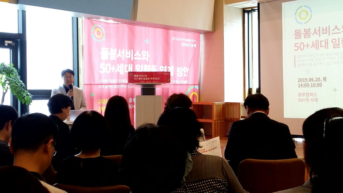 6월 20일 중부캠퍼스에서 열린 돌봄서비스와 50+세대 일활동 연계 방안 포럼에 참석했습니다.