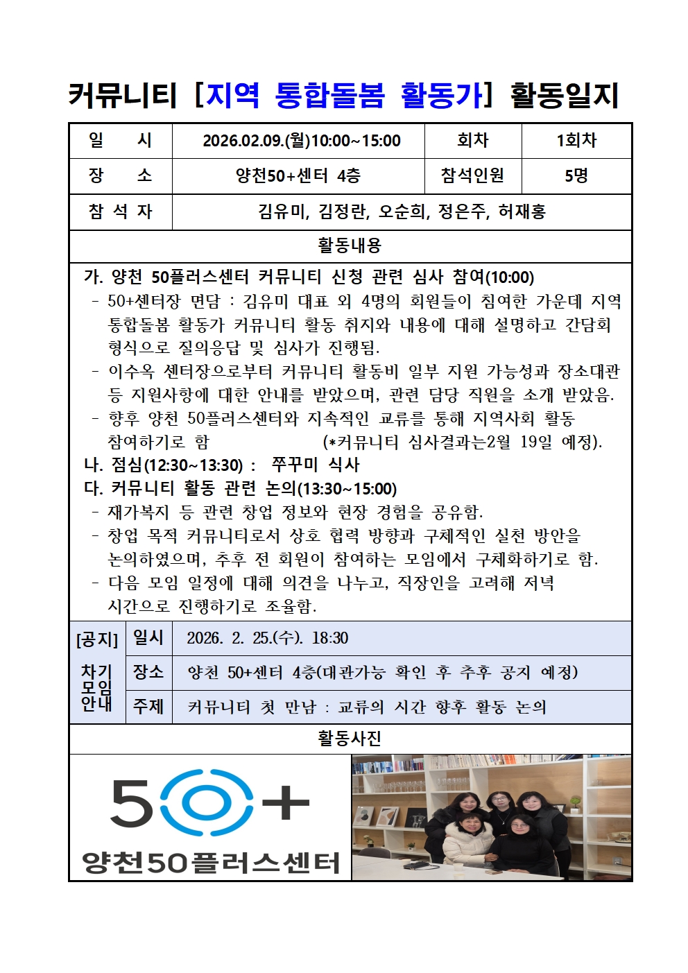 [1회차 활동일지] 양천 50플러스센터 커뮤니티 신청 관련 심사 참여 및 활동 논의