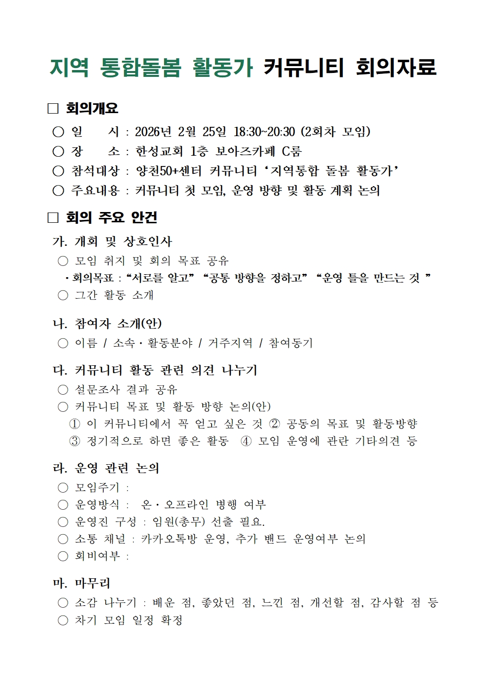 [2회차 활동모임] 지역 통합돌봄 활동가 커뮤니티 활동 논의
