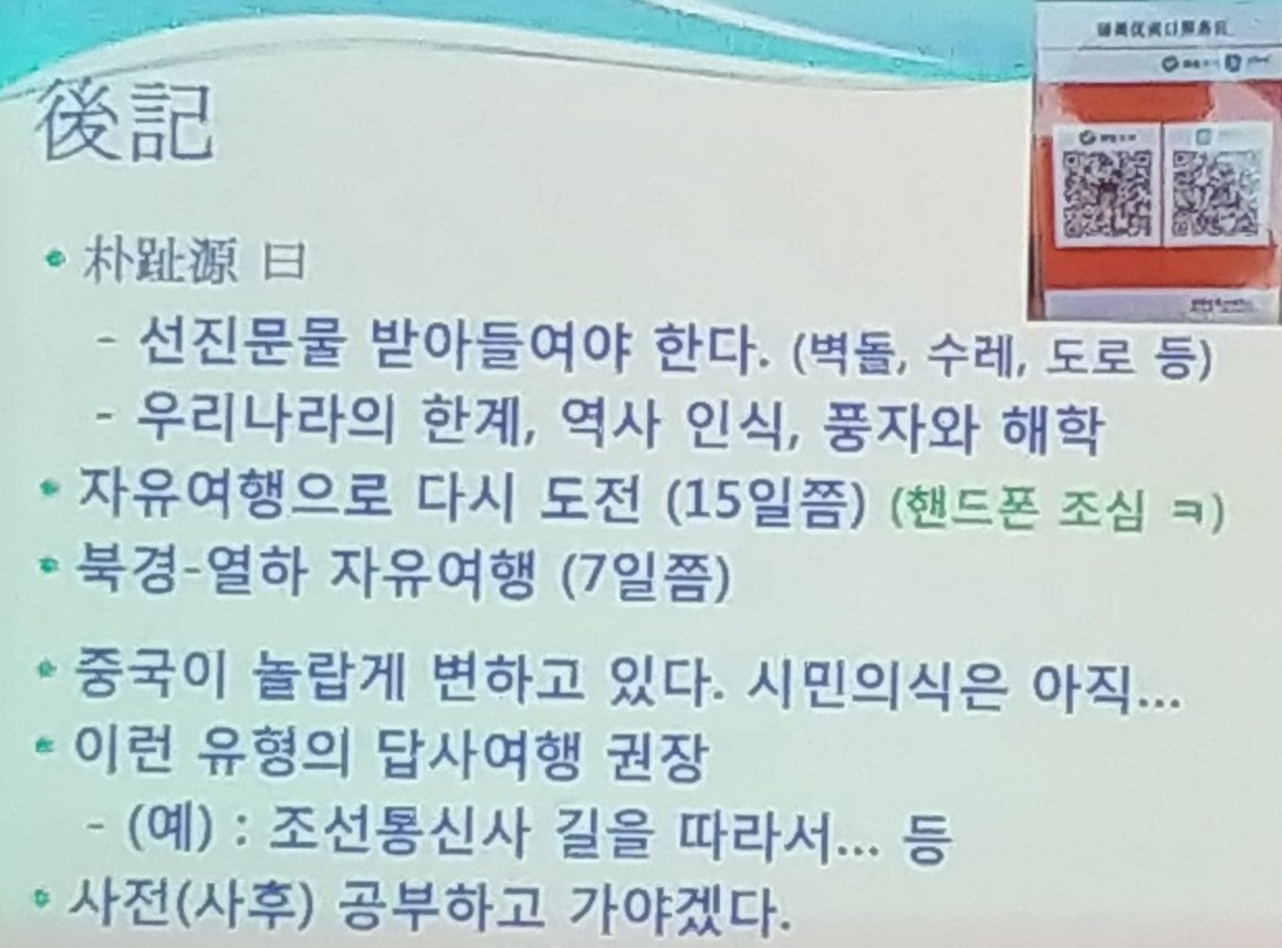 지난 8월 말 몇몇의 답사회원들이 연암 박지원의 '열하일기'를 따라서 여행을 하였습니다.