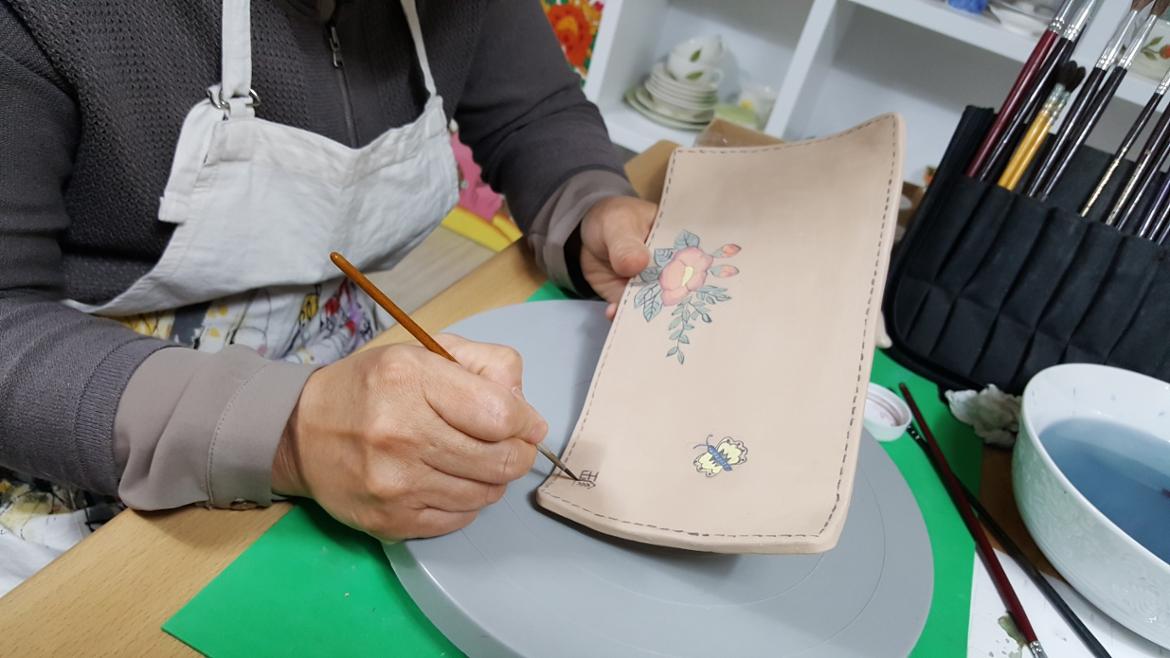 도자기에 채색하는 색은 한지에 채색하는 색과 느낌이 다르고