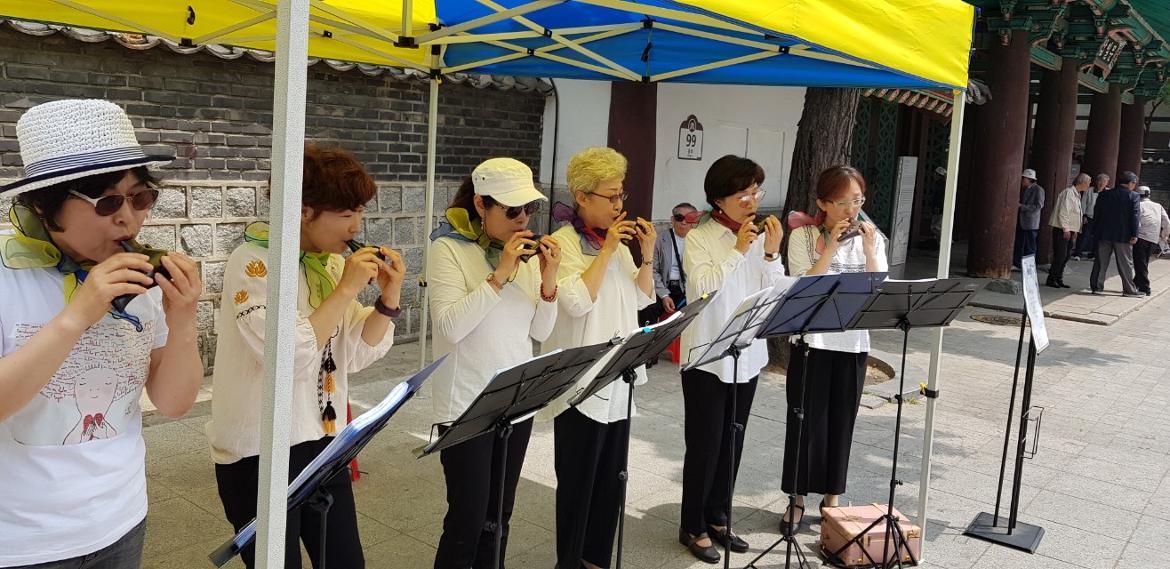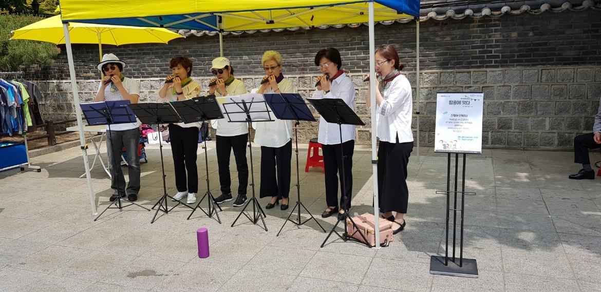 우리 산들애 오카리나 팀은  11시 개장과 함께 약 20분간 7곡을 연주하여