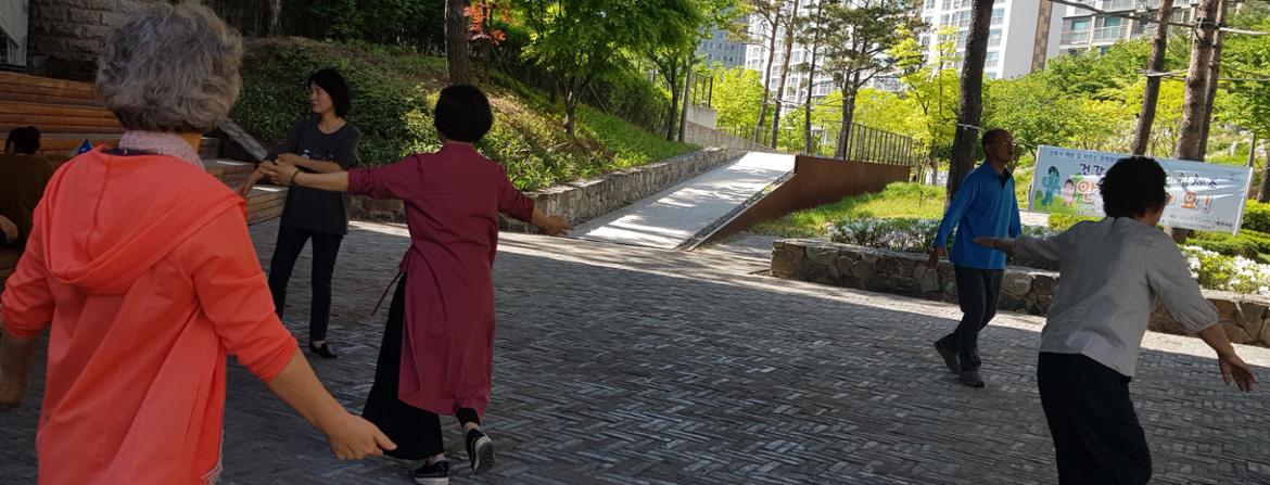 - 공덕역 근처 경의선 숲길에서 주민들과 춤추기에서 주민들의 호응이 좋았다-함께 춤추기