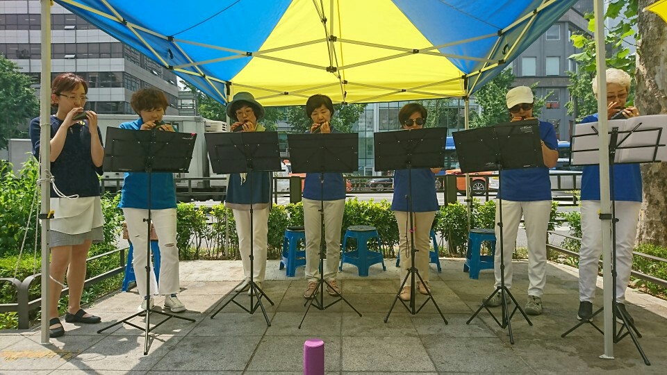- 오프닝 공연이었고  좀  이른 시간인데도 날씨가 너무 더워서 공연을 해도 거리의 행인들이 멈추고 들어주기에는