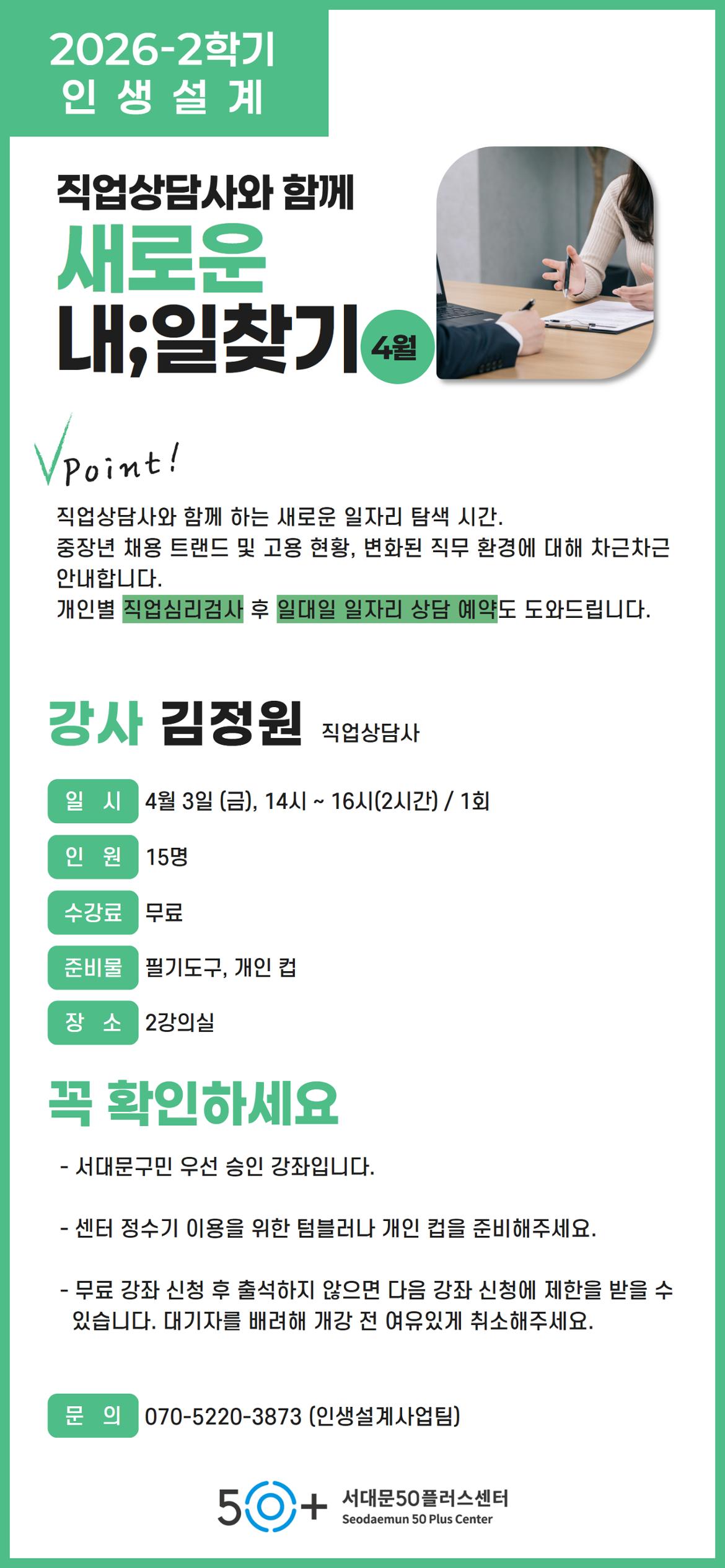[서대문]직업상담사와 함게하는 새로운 내;일찾기-4월마감 D-35