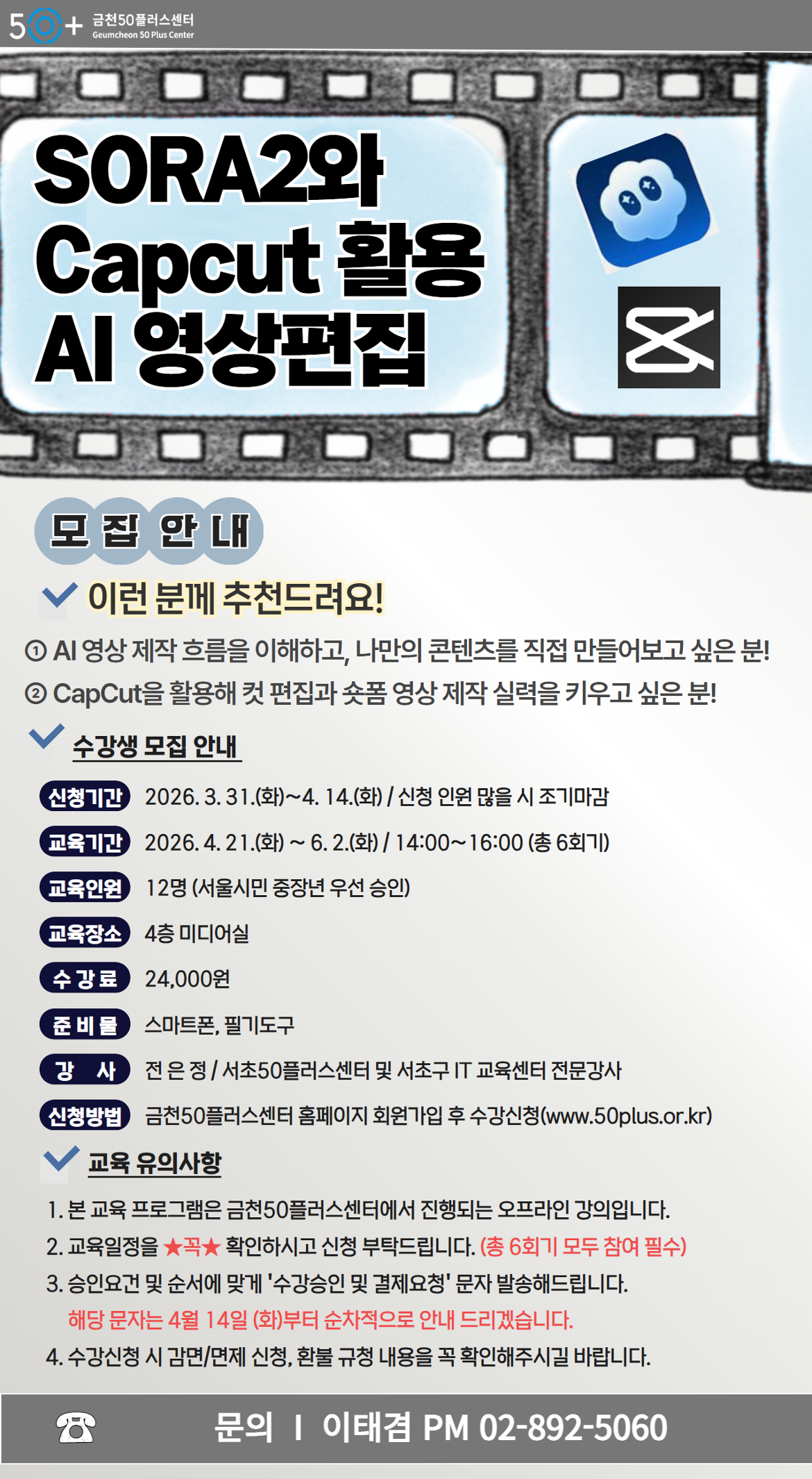 [금천][인생설계]SORA2와 Capcut 생성형AI영상편집마감 D-14