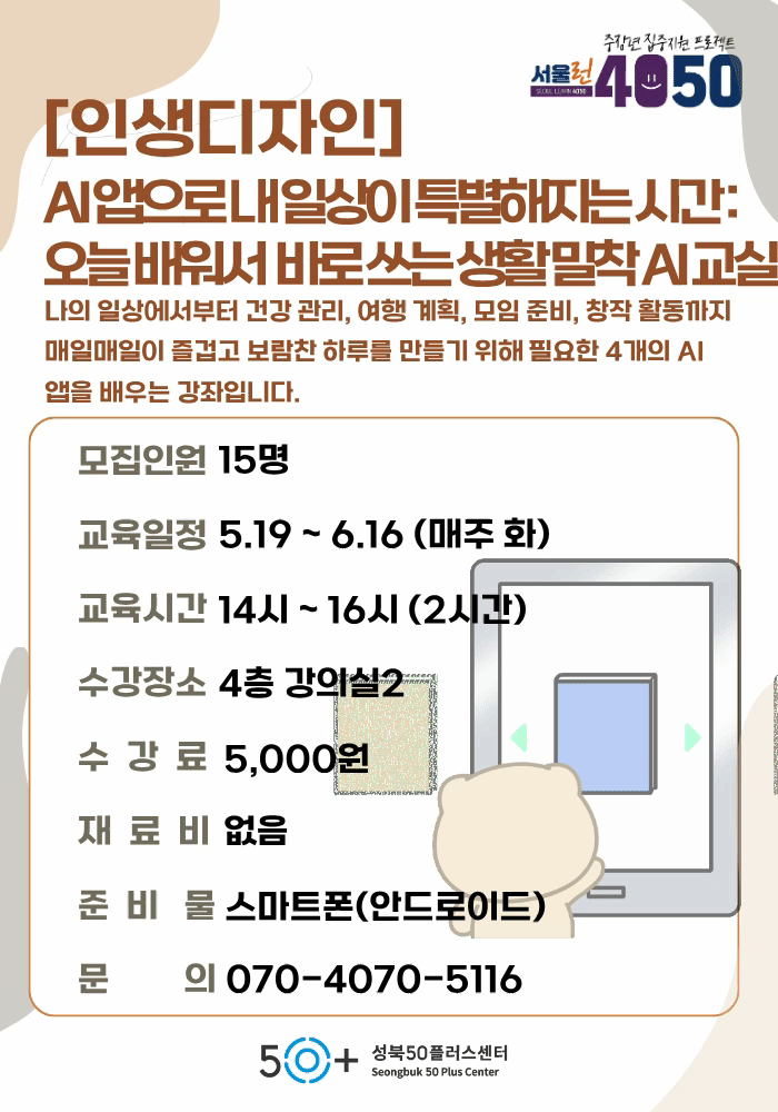 [성북][인생디자인]AI 앱으로 내 일상이 특별해지는 시간 : 오늘 배워서 오늘 바로 쓰는 생활 밀착 AI 교실마감 D-19