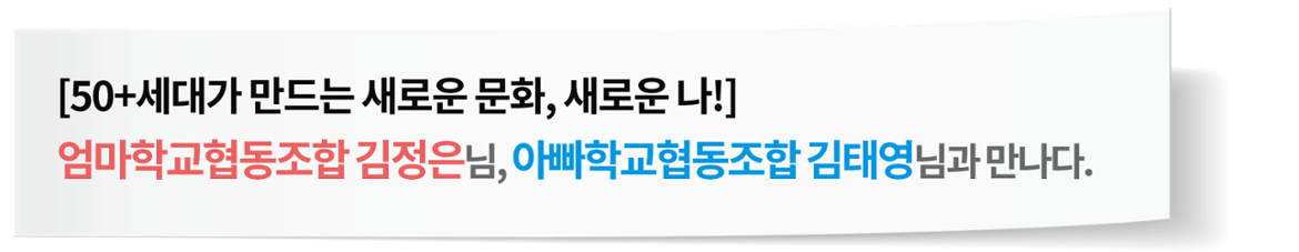 Q. 서울시50플러스 중부캠퍼스 공유사무실 스페이스 힘나에는 여러 입주자와 단체들이 모여 50+세대가 주축이 된 새로운 문화를 만들고 있습니다. 그 중심에서 엄마학교협동조합, 아빠학교협동조합이 만들고 싶은 새로운 문화는 무엇일까요?