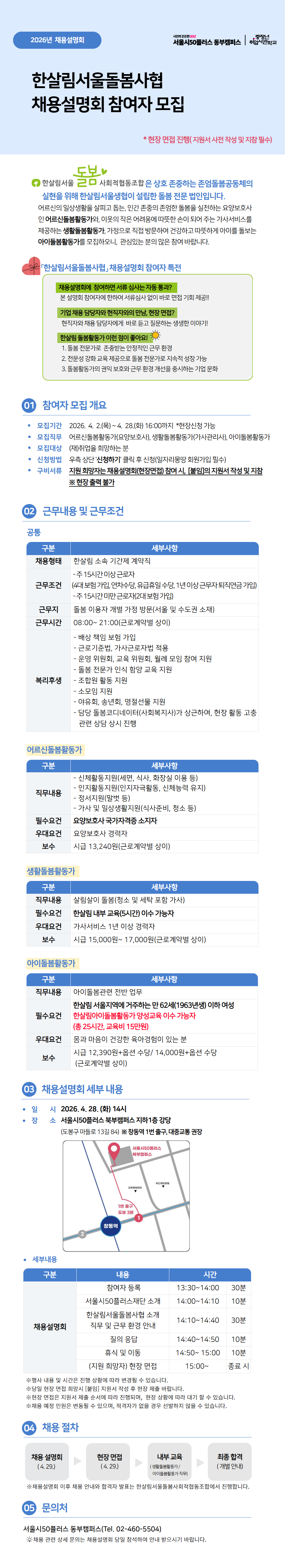 2026년 「한살림서울돌봄사협」채용설명회 참여자 모집마감 D-26